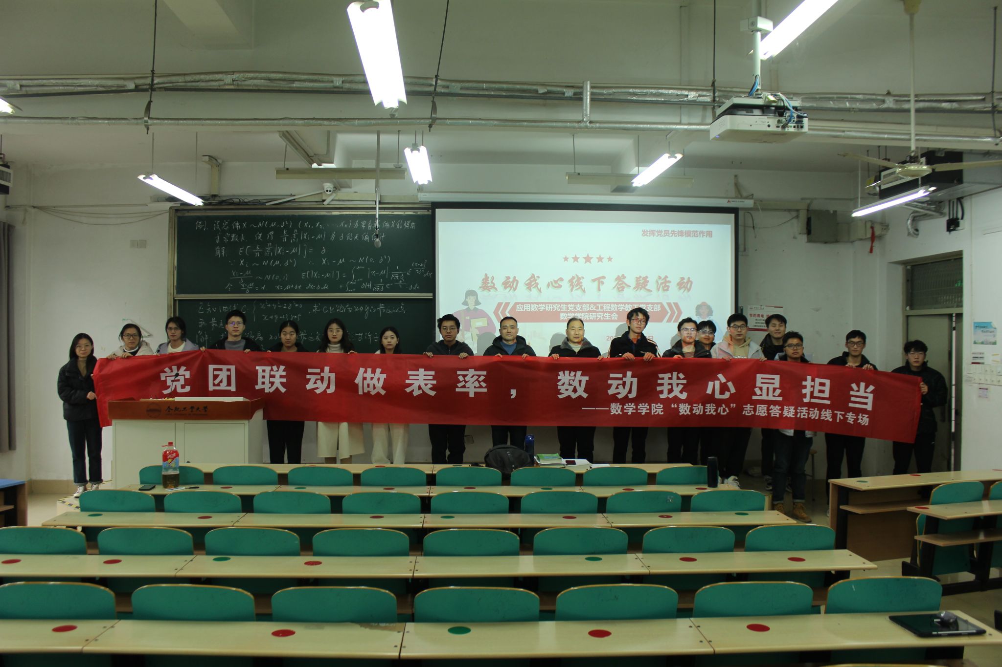 12月28日下午2点,“志愿青春、数动我心”高等数学线下答疑活动在翡翠湖校区5教201顺利开展。本次活动由437ccm必赢国际版研究生会联合应用数学研究生党支部举办,以“弘扬奉献精神,传播青春能量”为宗旨。本次活动邀请到郭庆和赵德勤老师以及10名研究生同学为60余名本科生答疑解惑,通过线下面对面答疑的方式,帮助学生查漏补缺,全面促进学生成长成才。