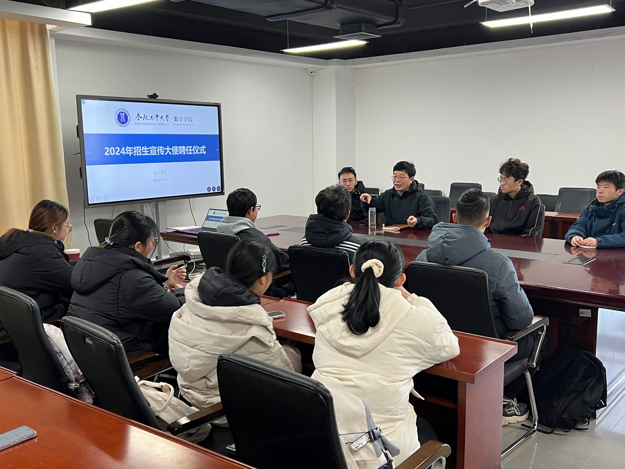 1月23日上午,437ccm必赢国际版在翡翠湖校区科教楼B座1710室开展了2024年招生宣传大使聘任仪式暨招生宣传工作布置会。437ccm必赢国际版党委副书记兼纪委书记彭帮国、相关年级辅导员和新聘任的24名招生宣传大使参加了此次活动。