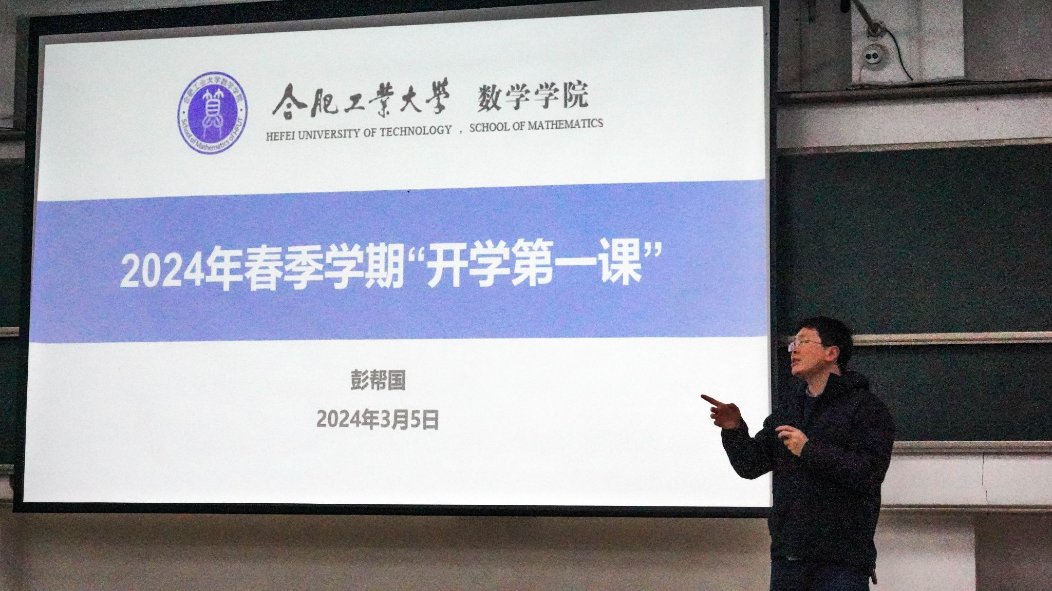 为有效把握好学生开学返校初的重要时期,切实引导学生以积极的心态和良好的精神面貌投入新学期的学习生活,437ccm必赢国际版积极响应上级号召,于3月5日晚,在翡翠湖校区1教102举行2024年春季学期“开学第一课”活动。437ccm必赢国际版党委副书记兼纪委书记彭帮国出席活动,辅导员和全体2023级本科生参加活动。