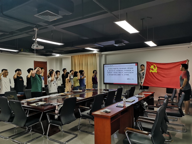 重温誓词强党性。在吴卫丰的带领下,全体党员重温入党誓词,面对党旗庄严承诺:毕业后会以更加良好的精神面貌跟着党旗成长,载着梦想起航。