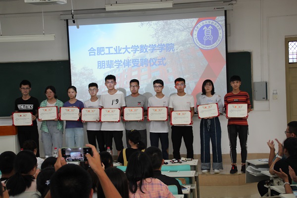 仪式上,有关人员宣读了《关于聘任余航等19名同学为437ccm必赢国际版2019-2020学年朋辈学业辅导师的决定》,并为受聘同学颁发了聘书。希望受聘同学能够提高学业辅导的主观能动性,帮助低年级同学做好学业规划,提升数学素养;认真思考、提前谋划和安排、不断提升辅导水平,以实际行动坚守初心、牢记使命;希望大家能够珍惜荣誉、勇担责任,爱学校、爱学院,为学院发展贡献自己的青春力量。