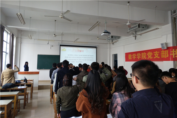 在研究生党支部书记党课公开课上,全体研究生党员重温了入党誓词。2016级研究生应用数学党支部书记李梦带领与会党员共同学习了十九大报告主要内容和十九大精神,介绍了党和国家过去五年的工作和历史变革,以及新时代的历史背景,丰富内涵,宏伟蓝图和战略安排;2016级研究生计算数学党支部书记陈薇介绍了关于十九大报告中加强基层党建工作的相关内容及自身体会;2015级研究生应用数学党支部书记黄山和大家分享了自己学习十九大报告的感触以及对支部未来工作的计划;2015级研究生计算数学党支部书记钱毅加讲解了我国新时代下的经济体系,以及为增强我国经济创新力和竞争力我们党需做好的六方面工作;2017级研究生应用数学党支部书记杨元奇讲述了阅读《十九大报告辅导读本》部分内容的心得体会;2017级研究生计算数学党支部书记蔡蒙琪通过人民日报中的一篇文章《给世界带来更多精彩》向大家解读了为什么“思想是政党的灵魂”。