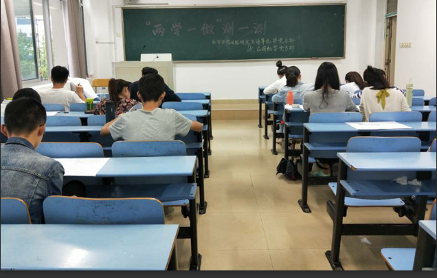 在此次活动中,首先由2016级研究生党支部书记陈薇和李梦带领全体党员学习《中国共产党章程》、学习习近平总书记系列重要讲话精神,并让大家根据“两学一做”学习内容,结合生活实际,自由讨论。然后,在两位书记的监督下,进行了时长一个小时的测试活动。此次测试活动以“两学一做”为主题,内容涉及到《中国共产党章程》、习近平总书记系列讲话和关于中国共产党的基本知识,题目类型有单选、多选、判断、填空和简答题。最后,测试活动以合格率百分百圆满结束,其中大部分同学高分通过。