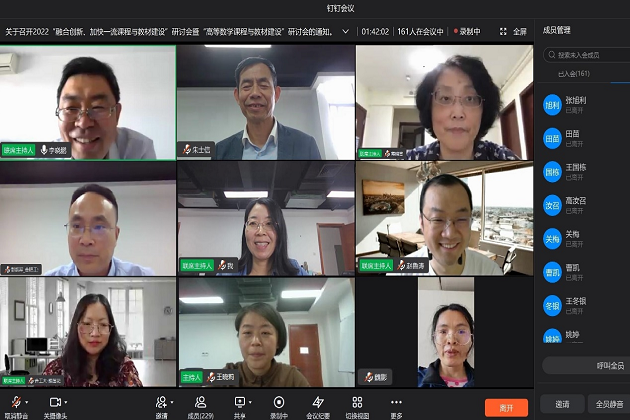 为贯彻2022年全国教育工作会议精神,落实《教育部2022年工作要点》及教育数字化战略行动,深入推进高等数学一流课程与教材建设,研讨交流信息技术与高等数学课程的融合创新,促进优质课程与教材的广泛使用,2022年5月14日上午9点,高等教育出版社联合我校大学数学虚拟教研室以线上会议形式召开2022“融合创新、加快一流课程与教材建设”研讨会暨“高等数学课程与教材建设”研讨会,我校朱士信教授牵头的大学数学虚拟教研室直播了本次会议。会议围绕首届全国教材建设奖获奖成果宣传推广、信息技术与高等数学课程教材深度融合的创新与实践、高等数学教学改革与高质量人才培养经验交流等相关内容开展。