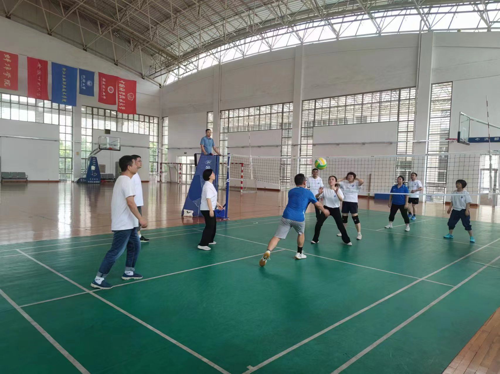 为了丰富学院教职工的业余文化生活,增强学院的凝聚力和合作精神,我院举办了第一届“数学杯”气排球比赛。学院40余名教职工参与了比赛。