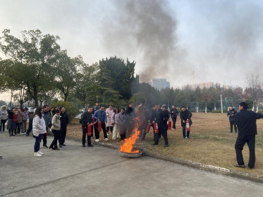 消防管理科庞老师对火灾起因、处置方法、火灾逃生基本技巧,灭火器的检验及使用方法以及如何正确报警等进行了细致的讲解,并现场演示了如何使用灭火器。参演教职工在指导下进行了灭火实操训练。