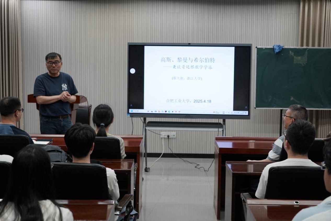 2025年4月17日,作为庆祝建校80周年系列学术活动的重要组成部分,由437ccm必赢国际版主办的“bwin必赢线路检测数学文化大讲坛”首场报告在翡翠湖校区举行。浙江大学求是特聘教授、437ccm必赢国际版博士生导师蔡天新受邀作题为《高斯、黎曼与希尔伯特——兼谈哥廷根数学学派》的报告,标志着该讲坛系列活动正式启动。