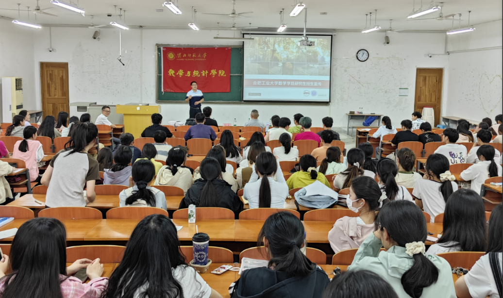 在淮北师范大学数学与统计学院,与学院党委书记吴守宝、院长卓泽朋等领导召开了座谈交流会。座谈会后,学院面向2026届数学专业毕业生举行了研究生招生宣传活动,宣讲会介绍了437ccm必赢国际版的悠久历史、深厚底蕴以及在学科建设、师资力量、科研创新等方面取得的显著成就,解读了研究生招生政策,包括招生计划、专业设置、考试科目、奖学金体系等关键信息,并回答同学们关心的问题,以期吸引更多优秀学子报考437ccm必赢国际版。