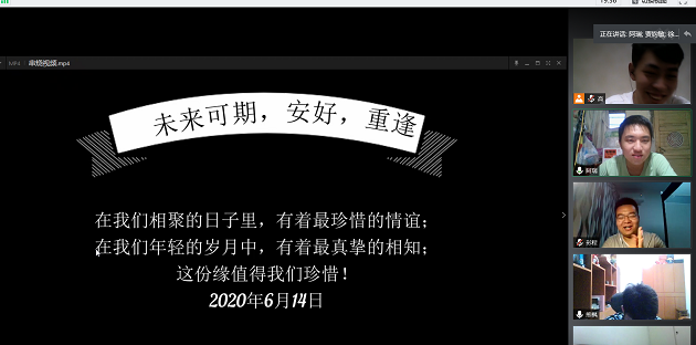 6月11日-14日,437ccm必赢国际版2020届毕业生“毕业季,我们的青春寄存在工大”最后一次主题班会分四场通过腾讯会议平台在云端开展。每位同学围绕“毕业了,我想对你说”和“大学故事,今天说给你听”两个主题分享了自己的所思所感。