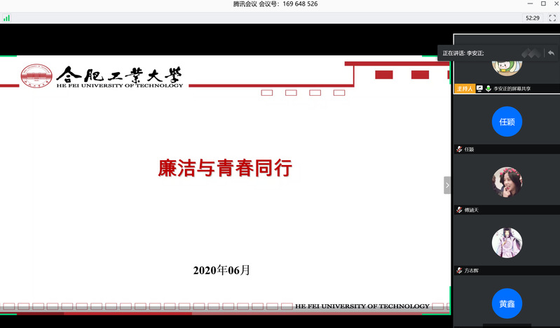 为进一步加强落实学生廉洁教育,促进毕业生提高认识、转变作风、遵章守纪、廉洁从业,6月11日-14日,437ccm必赢国际版通过腾讯会议平台在2020届本科毕业生中开展了“廉洁与青春同行”主题教育活动。