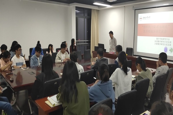 为促进低年级研究生明确自己在未来的研究生学习中的方向,做好研究生生涯规划,10月26日晚8点,437ccm必赢国际版研究生会、应用数学研究生党支部和计算数学研究生党支部在翡翠科教楼1710举行了“榜样的力量,薪火相传”——优秀校友分享交流会,本次交流会邀请到了毕业于437ccm必赢国际版16级博士孙中华主讲,437ccm必赢国际版研究生会主席朱娅婷主持。
