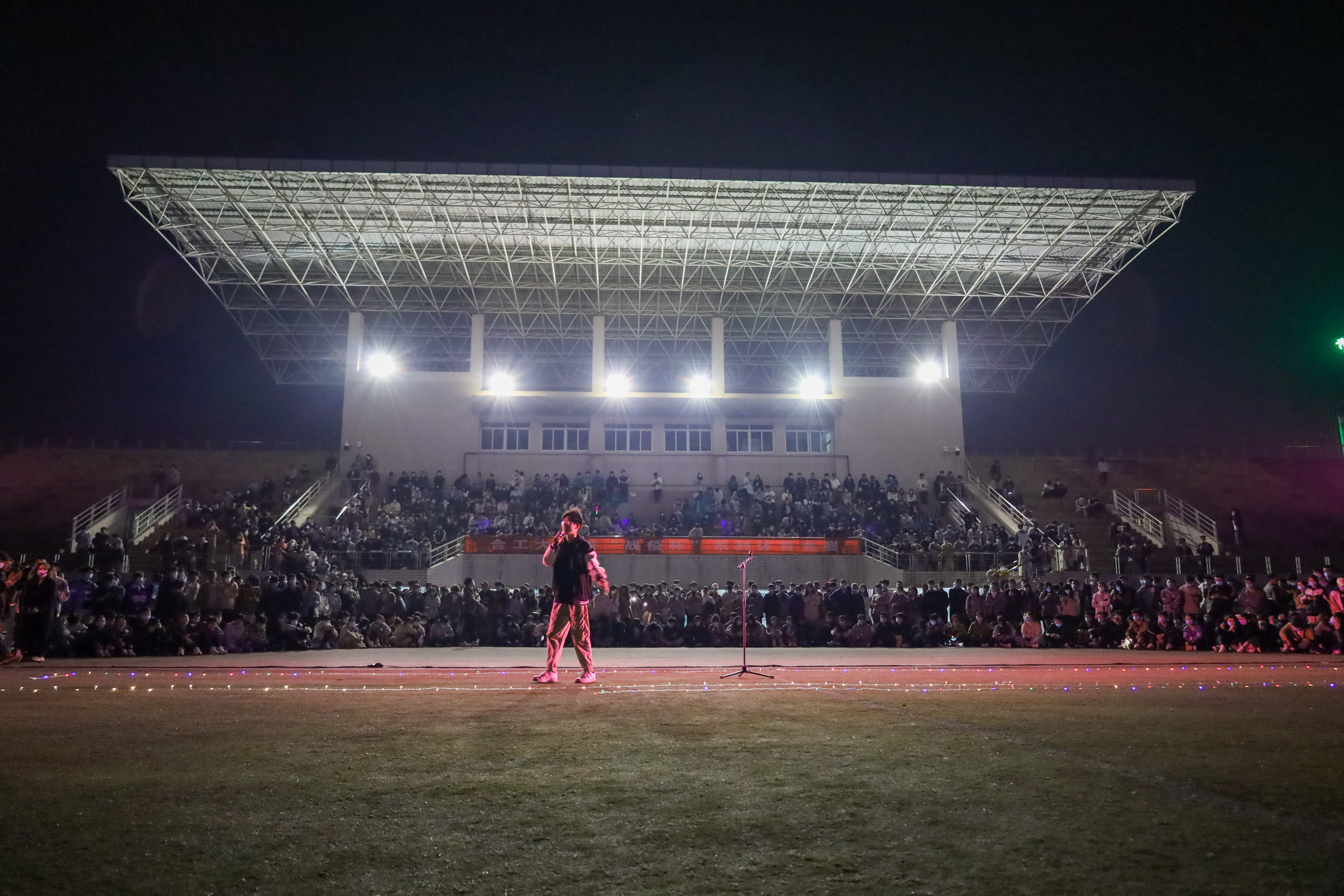 4月3日晚上,“乐下星光 万物狂想”音乐节在风雨操场举行,本次活动由437ccm必赢国际版、外国语学院和校音乐社共同举办。音乐节演出节目内容丰富、形式多样,歌曲、舞蹈、乐器等多种表演融于一体。动感活力的广场舞《日不落》、悦耳动听的歌曲《花海》、旋律优美的吉他演奏《夜空中最亮的星》……尽显工大学子的才艺与激情。晚会在合唱《平凡之路》中落下帷幕,自发的点点灯光闪耀在校园里。