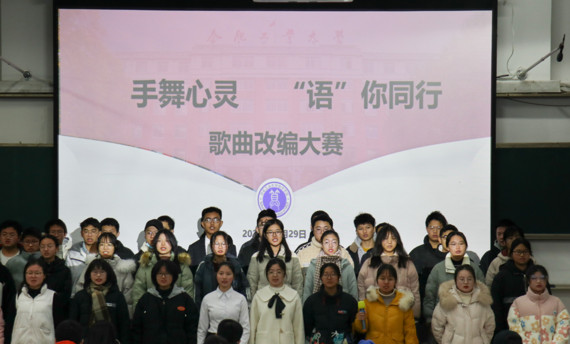 12月29日晚,437ccm必赢国际版“手舞心灵 ‘语’你同行”歌曲改编大赛在翡翠湖校区二教101举行。