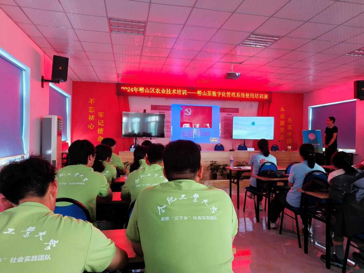 调研数字茶经济,见证茶香富山乡。调研期间,团队成员积极参与农村技术培训,亲眼见证了“茶e通”数字化管理系统在茶叶溯源领域的精妙应用,全面了解了茶农茶企如何把握数字经济新机遇实现增收创收,深刻体会到科技如何为崂山茶叶的品牌品质保驾护航,直观感受科技赋能带来的繁荣景象。同时,团队成员走访调研了崂山区的百年大集直播团队,亲眼见证了直播电商这一新兴业态如何助力乡村资源整合与产业链的延伸,为乡村振兴注入了新的活力与可能。