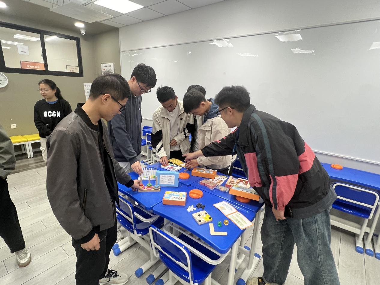 会后,学院一行人在负责老师的带领下,共同参观了校区的教学设施、办公环境以及各类功能区域,并进行教具体验。通过参观与体验,学生们直观感受到了教育培训机构的运营模式,也感受到了教育行业在技术应用、课程设计等方面的创新与发展。