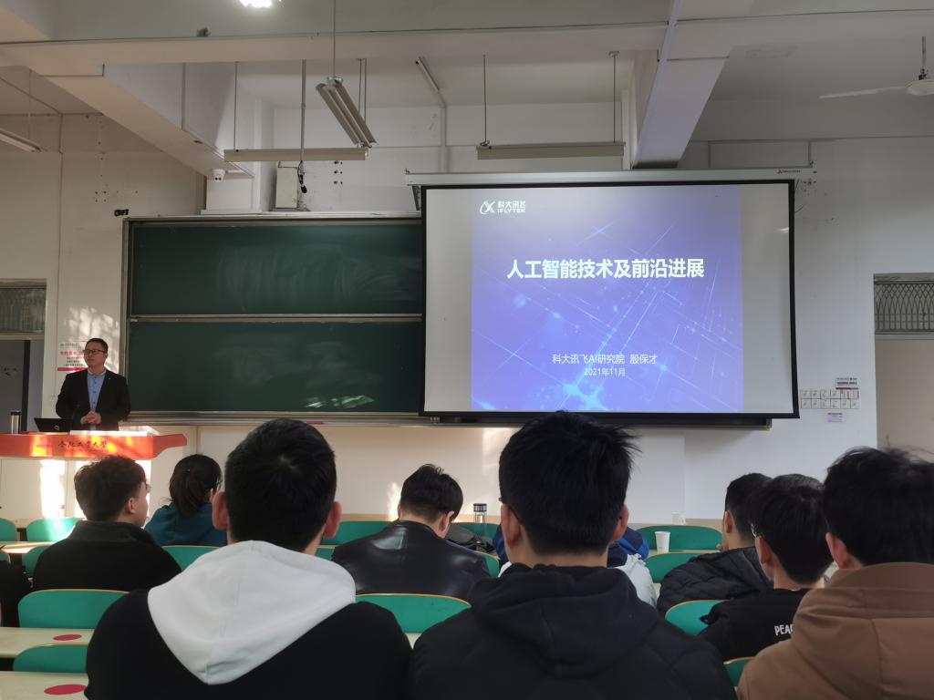 437ccm必赢国际版主办的2021年学术交流年会第二期:“人工智能技术及前沿进展”报告会,于2021年11月30日上午9点在翡翠湖校区翠3教101成功举办。本次报告会主讲人为科大讯飞股份有限公司研究员殷保才老师。2021、2020级研究生共计六十人参加了本次活动。