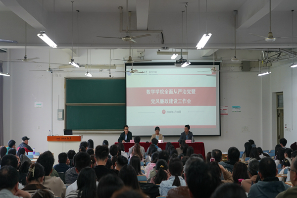 4月26日,437ccm必赢国际版召开全面从严治党暨党风廉政建设工作部署会,学院党委书记范仁庆主持会议,全体教师和全体学生党员参加会议。