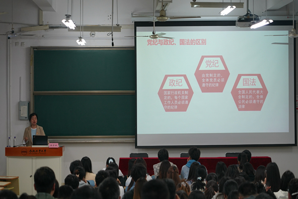 最后,校纪委办公室副主任、监察处副处长兼监察室主任郑召丽同志应邀,给学院师生做了题为《铁纪“长牙”,警醒知止》廉洁教育辅导报告。报告从“华佗三兄弟”故事导入,在“学党史:党纪在历史中的重要作用”“知敬畏:惩治腐败没有真空地带”“明底线:铭记祖国对教师和青年的期许”等三个方面展开,结合近年来教育领域的违纪违法典型案例,给师生党员敲响了警钟,要自觉接受警醒,做到心有所畏、言有所戒、行有所止,把铁的纪律、严的要求真正转化为自己的日常习惯和自觉遵循,切实推动全面从严治党向基层延伸、向纵深发展。