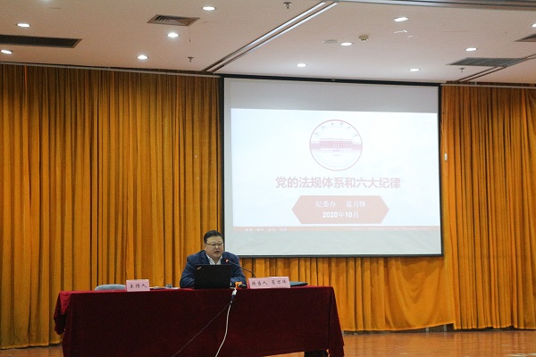 报告会上,葛万锋结合工作实际,系统介绍了党的法规体系及主要组成、党的六大纪律、对党员纪律处分的种类和影响期等内容,从纪严于法、纪在法前、纪法衔接的角度全方位分析了党规党纪与法律法规之间的关系。强调每位教工党员都应该全面掌握、自觉遵从党章,规范遵守党的纪律,对照相关管理条例,时刻自查自省,坚持立德树人根本任务,在工作中履职尽责,树立良好的师德师风。