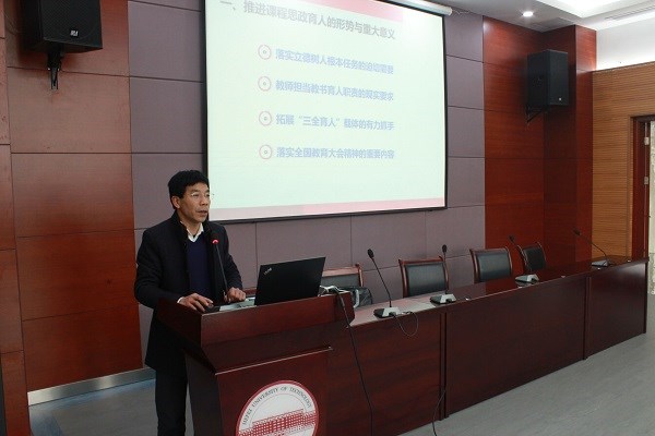 3月6日下午,437ccm必赢国际版党委书记方留在翡翠湖校区翡翠科教楼A座第五会议室为全院全体教师党员上了“党员先行,聚力课程思政”专题党课。