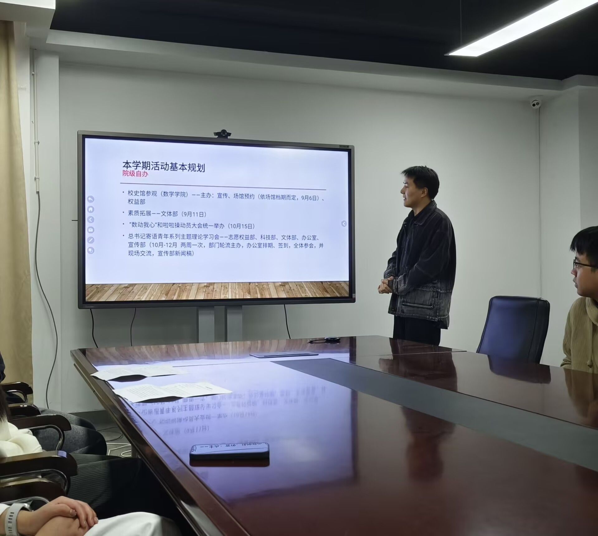 最后,主席团成员马龙再次强调研究生会的工作目标和团队协作的重要性,鼓励成员们积极投入工作,为研究生群体服务,同时动员各位干事在接下来的工作中认真负责,积极响应和配合,带领研会走得更远。